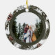 This beautiful holiday ornament features a centre circular framed photo, your customised name and Merry Christmas in simple typography. This rustic ornament features a painted pine and elegant baubles pattern. Shop this store for additional ornaments and classic Christmas cards!