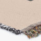 A quality printed throw has its advantages. This is a much finer weave throw than its loopier cousins, and though lighter, it is worth the investment for custom room accessorizing. The back is much prettier than the typical brown, and the fringe on the long sides very vivid, the selvage nicely done. Before photographing, I washed the throw in cold water, delicate, with a thicker woven throw the same size. On tumble dry low, this throw was dry in half the time as the other. This is a very practical quality if you use throws for furniture covers or to wrap up in frequently. The sleekness of the fabric makes it a great layer for accenting or protecting without the feeling of sitting on too much stuff. Perfect for napping or when you feel a light chill coming on. The color printing is beautiful and on this fabric, matched the design and color of my Photoshop image. This is an advantage for blending room fabrics and colors. The fringe on the short sides prints the colors from the design image and therefore varies from the side fringe. I streaked a white fractal line through the plaid pattern to give the illusion of weaving. This printed as crisp as an illusory thread, and put some white in the short side fringe, showing another advantage of print vs loomed- for artistic purposes, line lines, detail, and color integrity can be planned and preserved. My loomed throws have color limitations and more of a needlepoint texture. Print throws reproduce an exact image. The throw felt a little stiff straight out of the package, but this went away in the first delicate wash. Of course I searched the wash water for ink or bleeding and there was none.