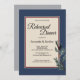 This Pine Blue Winter wedding rehearsal dinner invitation combines a classy, formal dusty blue framed border with elegant, evergreen pine tree boughs for a classic, yet rustic look. The botanical greenery foliage with calligraphy type over a beige background creates a nature focused vibe for a Christmas or forest destination marriage celebration.