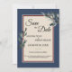This Pine Blue Winter wedding save the date combines a classy, formal dusty blue framed border with elegant, evergreen pine tree boughs for a classic, yet rustic look. The botanical greenery foliage with calligraphy type over a beige background creates a nature focused vibe for a Christmas or forest destination marriage celebration.