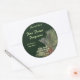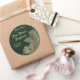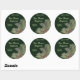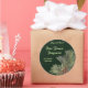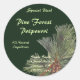 Round design with a pine bough and pinecone set lower right with a dark green background colour.  The Text areas has four customisable groups. This example shows a Potpourri label, works well for Pine Scented candles and soaps.