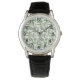 This men's watch has a winter design made of several different branches and two kinds of pinecones.