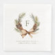 Pine Cone & Bow Wreath Monogram Family Holiday Napkin