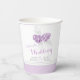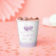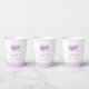 Personalise these wedding party paper cups with your own couple's full names. Purple, grey and white cups ideal for winter wedding event. Other matching items are available. © Original pine cone art hand drawing and design by Sarah Trett for www.mylittleedenweddings.com