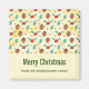 A Merry Christmas magnet with a cute pattern featuring pine cones and holly on a yellow watercolor background with little white circles scattered around.