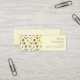 Mini business cards with a cute pattern featuring pine cones and holly on a yellow watercolor background with little white circles scattered around. Christmas greeting on the back.