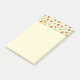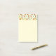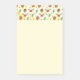 Sticky notes with a cute pattern featuring pine cones and holly on a yellow watercolor background with little white circles scattered around.