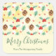 Merry Christmas stickers with a cute pattern featuring pine cones and holly on a yellow watercolor background with little white circles scattered around.