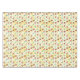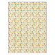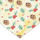 Tablecloth with a cute Christmas pattern featuring pine cones and holly on a yellow watercolor background with little white circles scattered around.