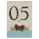 Pine cones and burlap printed table number card to compliment our blue winter wedding pine cone invitation set, can be personalised and ordered individually. All parts of this card are printed. There are no burlap or pine cones attached.