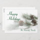 Pine cones on artificial pine branch with ice holiday card