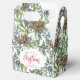 Christmas favour box with watercolor pine cones and pine pattern and personalised text.