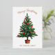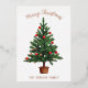 Pine Decorated Christmas Tree Holiday Rose Gold Foil Cards. A Christmas tree in a pot and text Merry Christmas. Add your family name and your text on the backside.