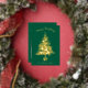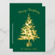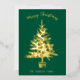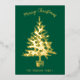Pine Decorated Christmas Tree Family Photo Holiday Rose Gold Foil Cards. A Christmas tree in a pot and text Merry Christmas. Add your family photo and name and your text on the backside.