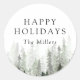 Dark green rustic watercolor pine tree forest holiday card designed by Shelby Allison that can be personalised with text on the front.
