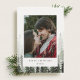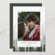 Dark green rustic watercolor pine tree forest holiday card designed by Shelby Allison that can be personalised with a photo and text on the front as well as an optional photo and greeting on the back.