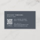 Rustic elegant business card design features a forest of pine trees in muted shades of hunter and forest green, with two lines of custom text for your business name and/or your name and business description, in a chic combo of block and italic lettering. Add your full contact information to the reverse side in white on dusty blue, along with a customisable QR code.