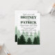 Pine Green Enchanted Forest Wedding Invitations - each invitation features a themed woodland scenery at the bottom that consists of evergreen pine trees with various elegant fonts at the top. You can also customise this card to use as your rehearsal dinner invites, birthdays and so much more. These wedding invitations are set to high quality basic card stock; however, you can change the stock to linen, felt (embossed), recycled, and several metallic shades if you would like under number 2 (choose your style, size & paper type) below the orange add to cart button. A list of the additional costs for a fancier card stock are displayed also under that option. Each invitation comes with a fitted white envelope.