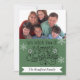 Black text that reads "We Wish You A Merry Christmas" on front and "and a Happy New Year!" on back with a pine green background, white snowflakes and a silhouette deer, and areas you can add your family name and photo on a Christmas holiday greeting card you're sure to want to send family and friends!