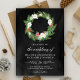 Pine Leaves Floral Wreath Black Christmas Wedding Invitation