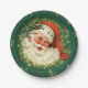 Here's a fun vintage portrait of Santa on these paper plates, with his traditional stocking cap and bushy beard. Santa is circled by pine needles on a dark green background. Scattered pine needles around the perimeter complete the pattern. It's fun to celebrate Christmas the old fashioned way, and kids will love it!