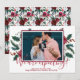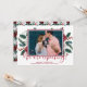 Photo Christmas Pregnancy Announcement Cards. Expecting parents! Modern red hand lettered typography script "we are expecting!" card to share your happy news with family and friends in the holiday season. Features watercolor burgundy white floral pine branches red berries with holly arrangement. Inside the frame you can change the photo for your own. You can personalise the design by replacing the texts and horizontal photo. #3347 If you need help or matching items, please contact to me!