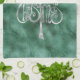 Pine Teal Green Silver Christmas Tree Tea Towel