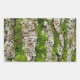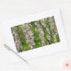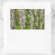 Vibrant green moss grows in vertical grooves of faded pine tree bark. The macro photograph shows the alternating stripes of bark and moss as well as the texture of each. The bark is layered, scaly, with fine gradations of colour: greys, browns, and even pale green. The moss is comprised of myriad short fine hairs, as though the tree wanted some green fur highlights.