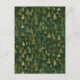 Keep in touch with friends and loved ones with a beautiful chiyogami pattern postcard featuring green and gold pine trees on a dark green background.