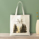 Pine Tree Forest Beige Script Name Monogram Tote Bag