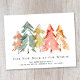 Elegant moving announcement with a watercolor forest of abstract pine trees in muted green, red, gold and orange. Personalise the "Our New Neck of the Woods" text, your family name and your new address. On the reverse side, personalise your announcement in more detail and include telephone numbers and email addresses if desired.