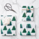 Green pine trees and dots on a white background, this wrapping paper is fun for holiday gift giving.