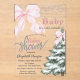 Pine Tree Pink Bow Snowflakes Baby Shower Acrylic Invitations
