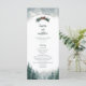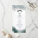 This pine tree wedding program features a playful modern font and rich evergreens against a white page with a blue sky. Perfect for a rustic wedding or any special occasion.
