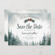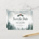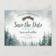 This pine tree wedding save-the-date features a playful modern font and rich watercolor evergreens against a white page. The perfect choice for a casual forest wedding.