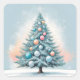 Pine Tree Snowflakes | Blue Orange Coral Ornaments Square Sticker