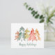 Wish your friends and family happy holidays with this beautiful watercolor abstract of pine trees in muted green, red, gold and orange. You can easily personalize the seasonal greeting on the front, and a message and your names on the back.