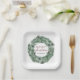 Pine tree wreath Christmas | Holiday paper plate with "Merry Christmas" script . For more advanced customisation of this design, please click the BLUE DESIGN TOOL BUTTON to change font, size, and colour. Matching items are also available.