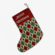 Show your love for winter with this pine tree stocking. Featuring cosy holiday colours of green, red, brown and tan. The red diamonds and top can be customised by changing the background colour. Personalise by changing or removing the text. I created this pattern from an image in my original acrylic painting.