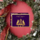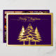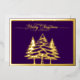 This is a classic purple Merry Christmas card featuring a gold foil front with a beautiful gold frame outlining the Gold Merry Christmas and elegant trees in bold silhouette.  The back of the card displays a collage of six photos: one large main picture and five smaller ones arranged along the right and bottom sides.