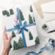 A Winter scene featuring pine trees surrounded by snow. A simple, but beautiful gift wrap for the holidays.