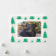 This personalized photo holiday card is characterized by a charming, repeating border of simplified green Christmas trees accented with small gold heart shapes on a neutral background, framing a central photo space. This design aligns with art licensing themes of Christmas/Seasonal Holidays and a Whimsical/Contemporary Festive style. Customers would search for this using terms like "Photo Christmas Card," "Green Christmas Tree Border Card," "Simple Holiday Photo Card," "Personalized Christmas Card," and "Gold and Green Holiday Card.