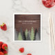 Rustic paper napkins featuring beautiful pine trees with modern typography against a barn wood background.
