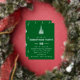 Elevate your party invitation with these "Pine Trees Snow Falling Christmas Foil Invitation" cards. The design is simple and elegant, with all your information ready to customise on a green forest background, putting you in control. The back of the card displays a pine tree pattern on a snowing green background. Don't hesitate to grab yours today!
