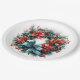 Paper plates with a pretty Christmas wreath. A festive image with a pine wreath decorated with red flowers, holly and a lovely blue bow. Delightful.