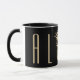 Sip your morning coffee with this tropical themed coffee mug. This design features the word "ALOHA" with a faux gold pineapple in place of the letter "O" on a black background. Designed by artist ©Susan Coffey.