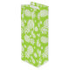 Fresh tropical shades of green and white pineapple and daisy flowers pattern gift bag, perfect for giving gifts. Example shows the wine or spirits gift bag, ideal to give a bottle. Original graphic art pattern and design by Sarah Trett.