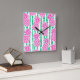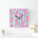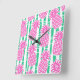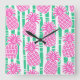 Pineapple Bamboo Stripes Pink & Green Pattern Square Wall Clock