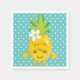 A charming design, this paper napkin features a white polka dot pattern on an aqua coloured background. "Good Vibes Only" is written in cool dark blue font on a bright yellow pineapple. Order yours today!