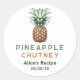 Editable Homemade pineapple chutney canning label featuring a vintage style pineapple illustration. Make your own canning labels for your favourite homemade recipes. Perfect for preserves, homemade gifts or as kitchen pantry organiser.